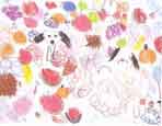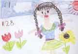 この時期に来ると、カタログ期の絵と違って、上を空、下を地面と決めて、構図をとるようになります。この「天地」というのは、大きな概念で、グランドライン(GL)と言ったりします。天に空や雲、太陽が描かれ、地にチューリップやひまわり、女の子が描かれるようになり、本格的な概念が形成されるようになります。