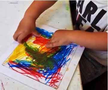 スクリブルと言って、意味のない絵を描くことから始まります。手を動かすこと、色が塗られること、それらが相まって楽しいから描いた絵です。2歳くらいまで、こうした絵を描くことで、指と手、肘、肩を連動して動かすようになります。専門的に観ると、このスクリブルは、何歳何か月の子のものだ、と言うことがわかったりもします。