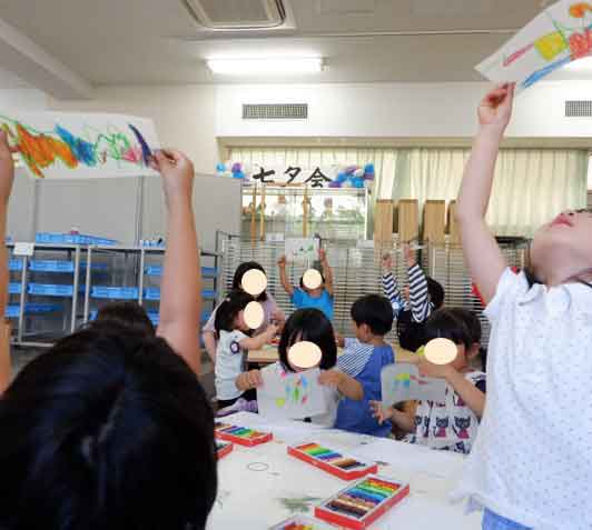 「じぶんが表現することは、すべて認められるんだ!」ということを、大人は保障する必要があります。そうして、自分が充分に認められて、子どもは、はじめて他者の表現にも目を向けることが出来ます。0~3歳くらいまでは、シャワーのように、ほめことばで子どもたちを認めていきます。そうして4~5歳になってくると、ほかの子の作品をほめ始めます。これは、教育として重要なことだと考えています。