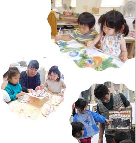 2.美術制作活動:描く・作るといった表現活動をとおして、個性や創造性を引き出します。
