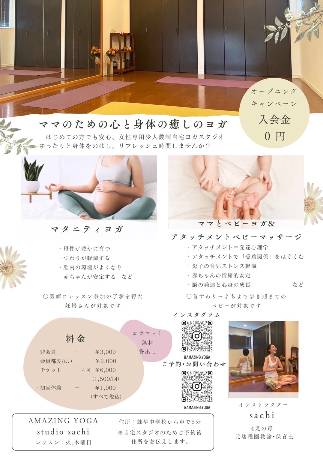 4児の母・現在、保育教諭としてこども園で働かせてもらってます。そちらの方でも、毎週金曜日はベビーマッサージを行っております。出産の産前産後を、すこしでもリフレッシュできて、親子でかけがえのない時間を過ごしてほしいとの思いで開設しました。
