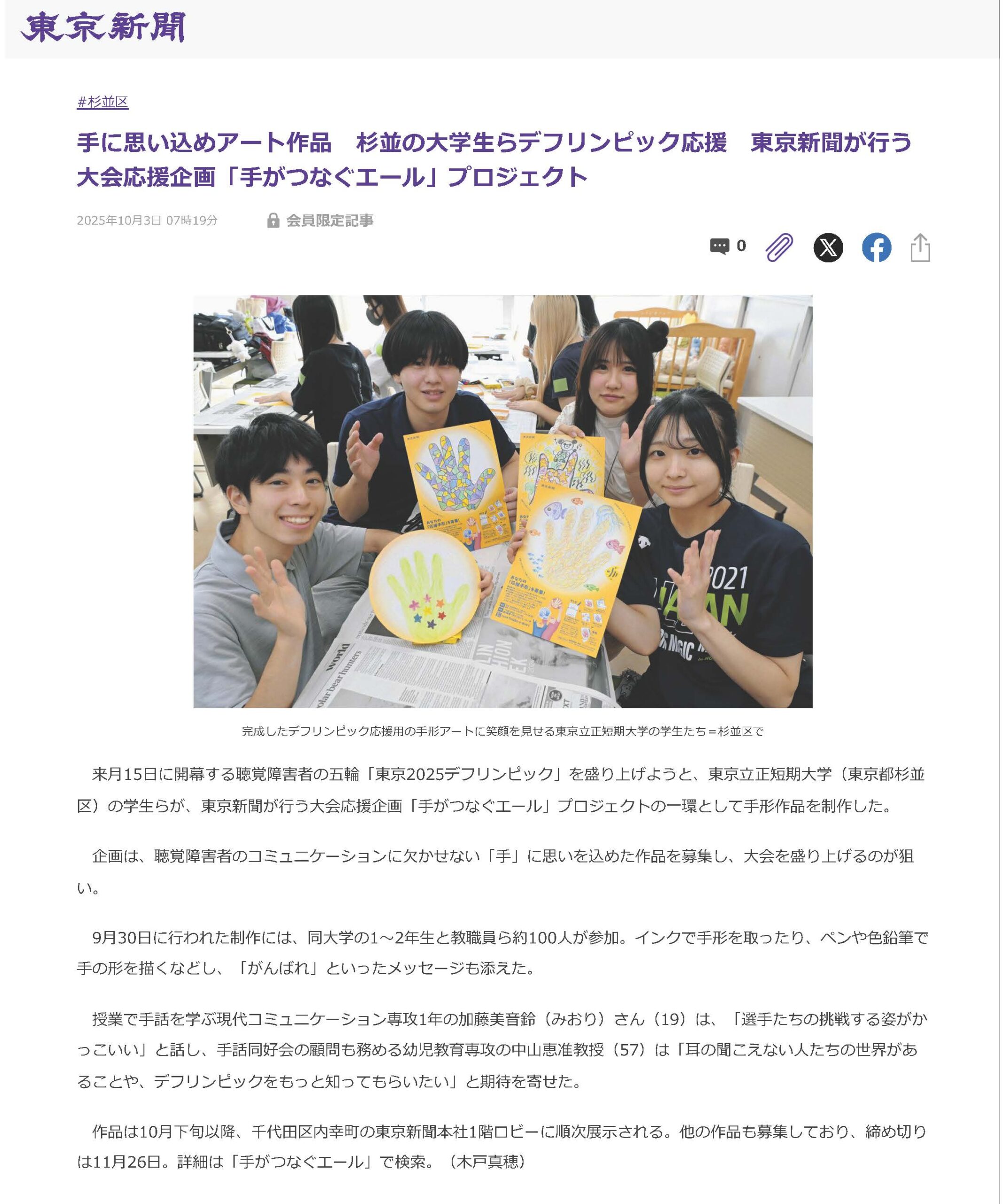インストラクターの中山恵さん(東京立正短期大学准教授)が、学生とともに「東京2025デフリンピック」応援企画に参加されました。