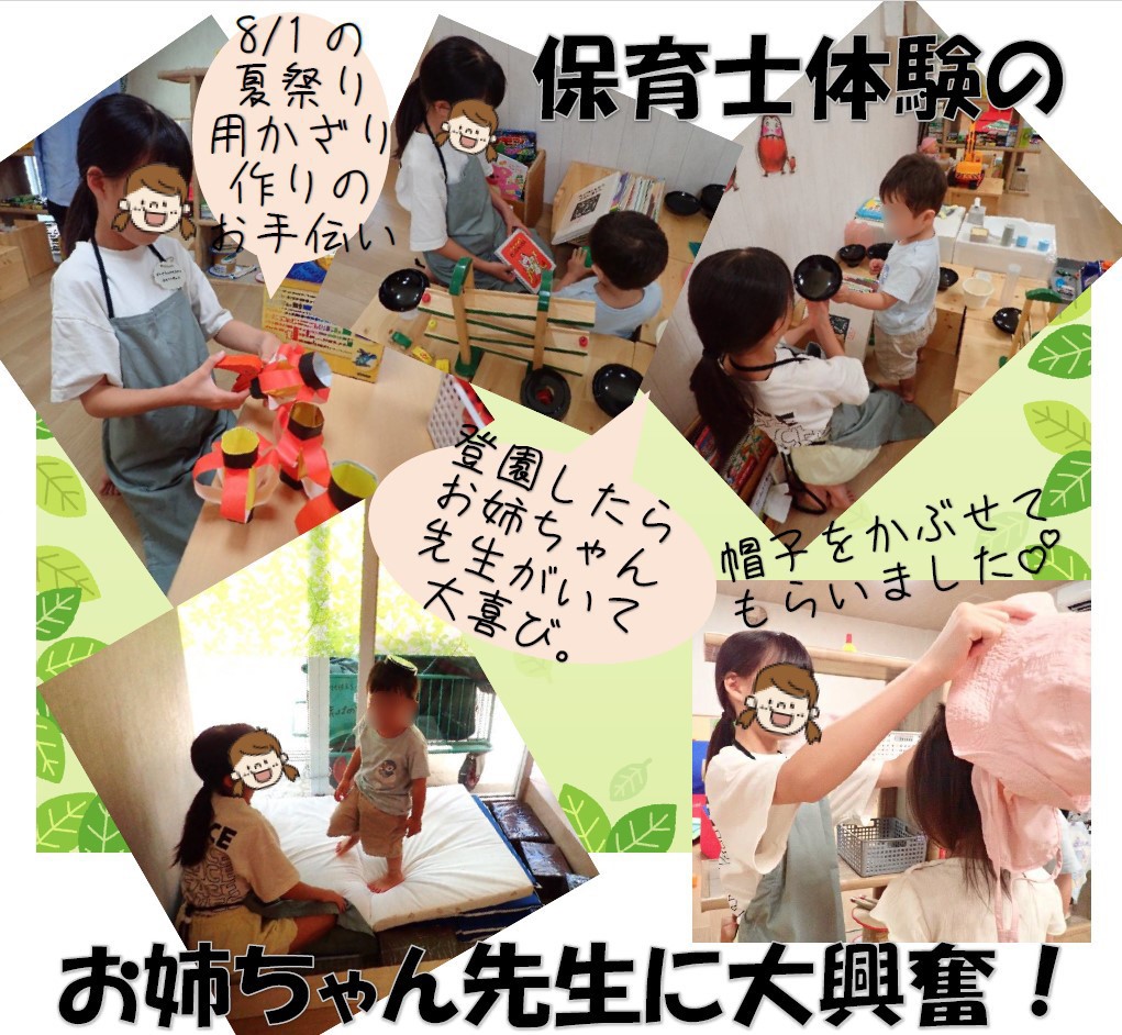 さらに、月に1度は季節の行事を取り入れて子どもたちと楽しむほか、小学生まで対象を広げたワークショップや長期休みには小学生を対象に保育士体験を実施し、きょうだいや地域の子どもたちが交流できる環境づくりにも力を入れています。