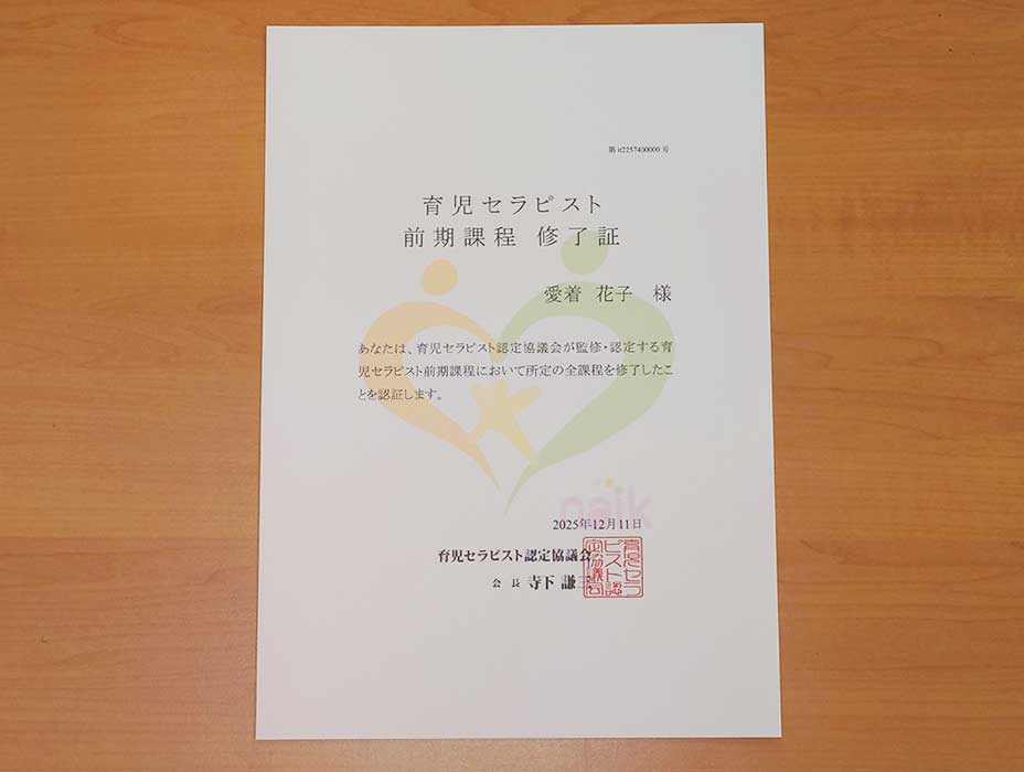 そのため、本講座をご受講いただきますと申請のお手続きなく『育児セラピスト前期課程(2級)』を修了いただけます。